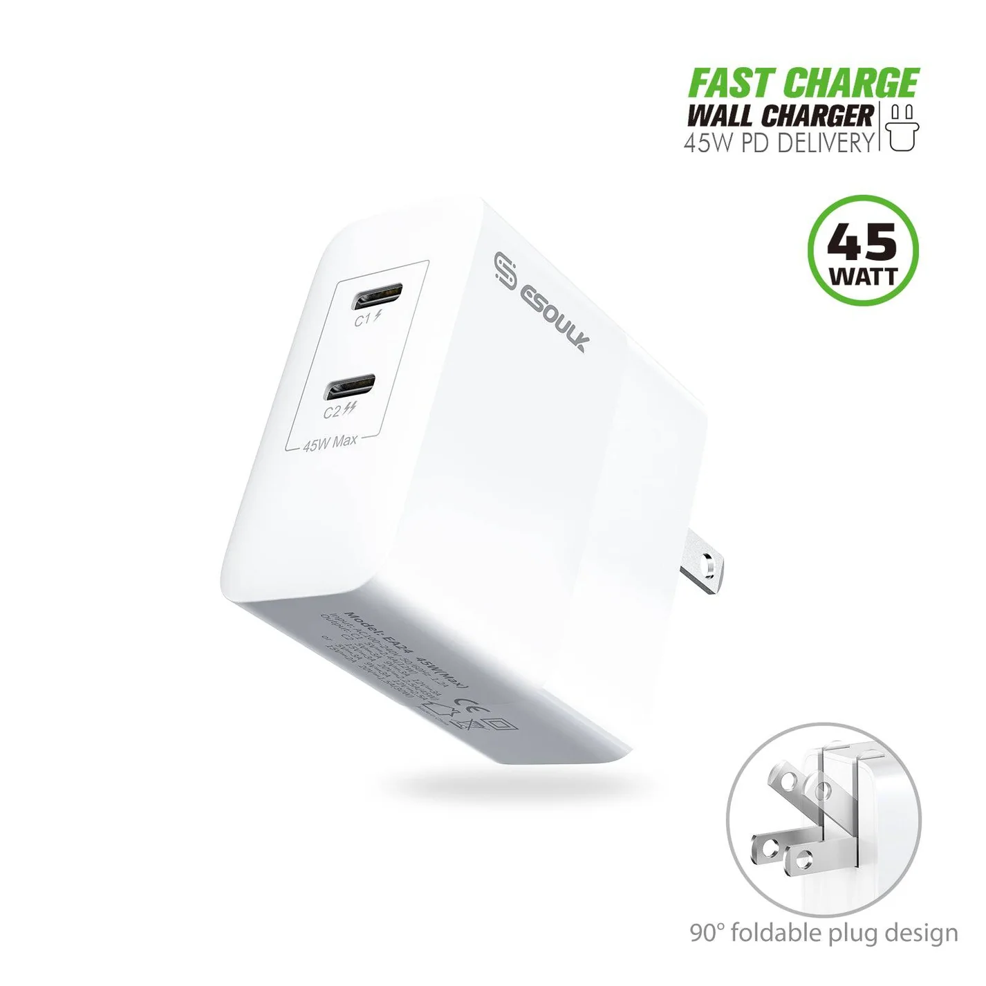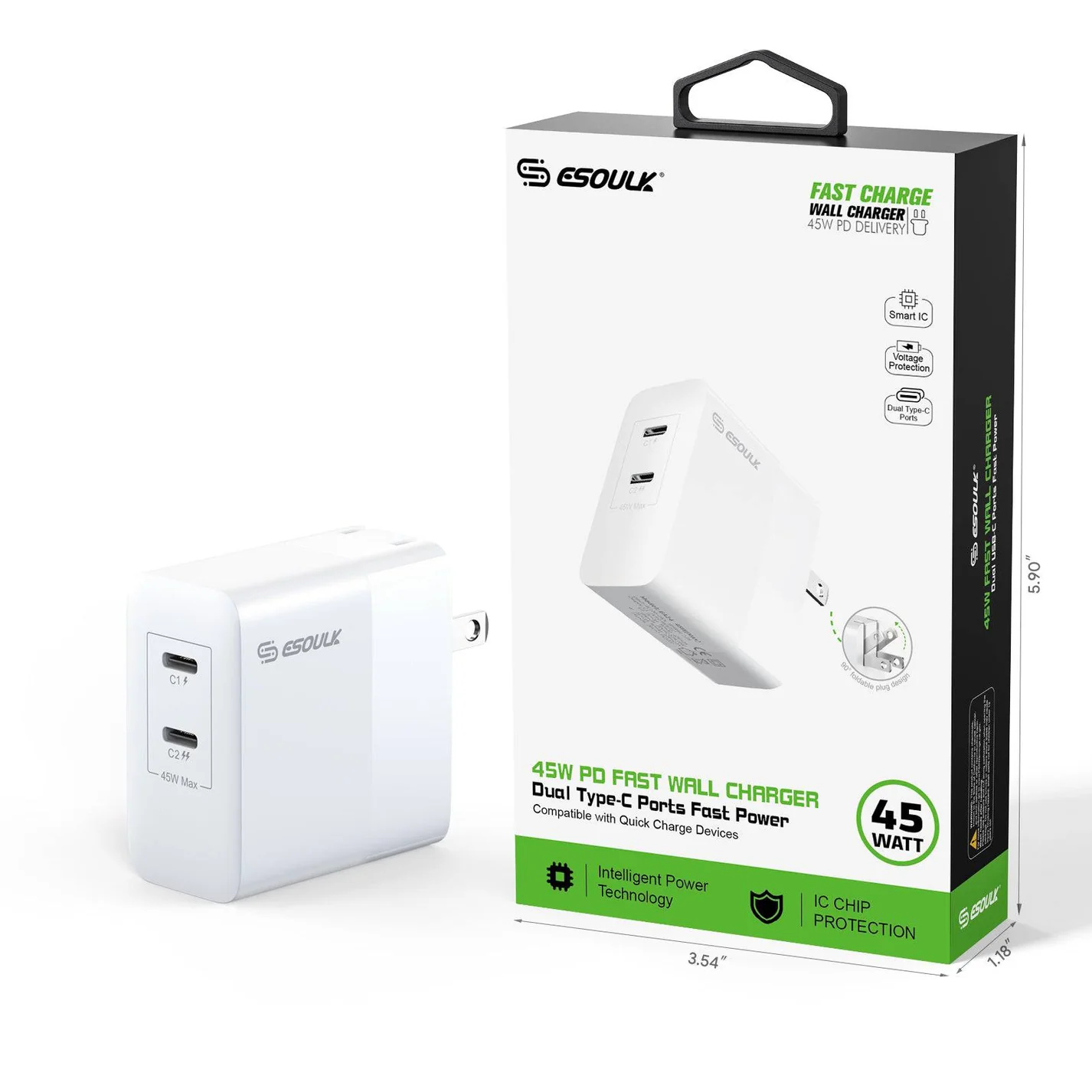 45W PD Dual Type-C Fast Wall Charger (EK-2002WH) | White