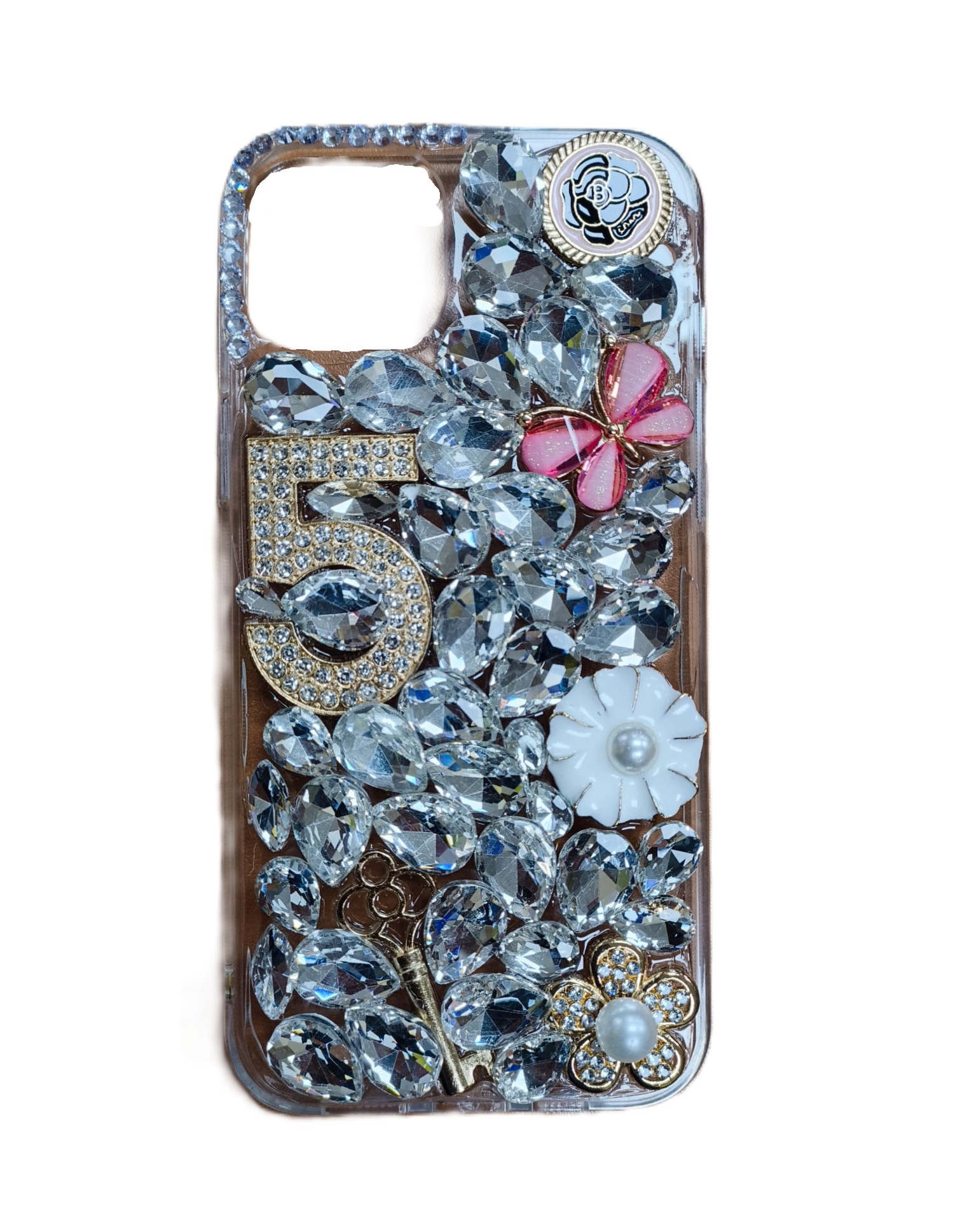5 CRYSTAL DIAMOND CASE FOR IP 16 PRO SILVER WITH RETAIL BOX PACKING.