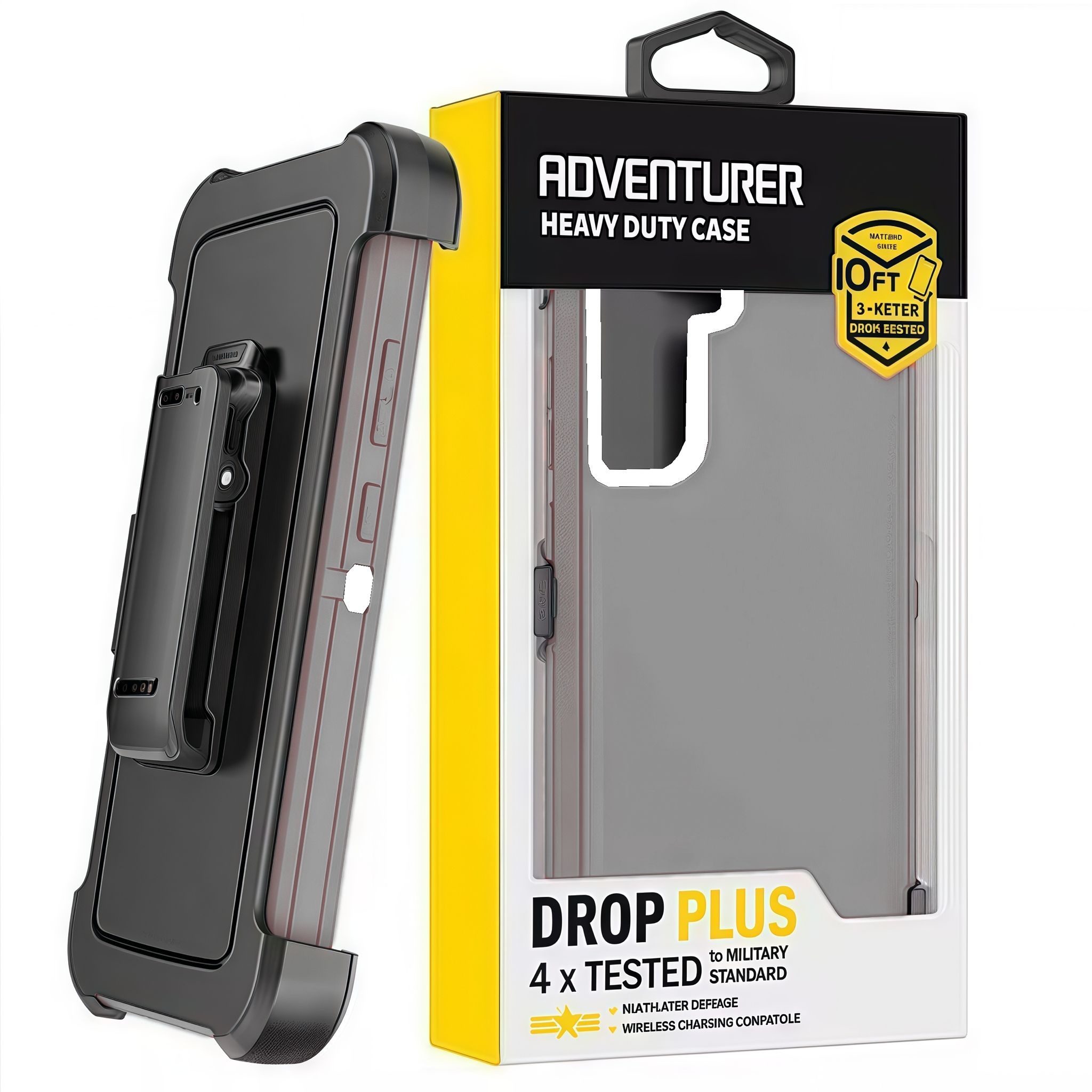 ADVENTURER HEAVY DUTY CASE WITH CLIP WITH RETAIL BOX PACK FOR SAMSUNG S22 ULTRA GRAY-WHITE