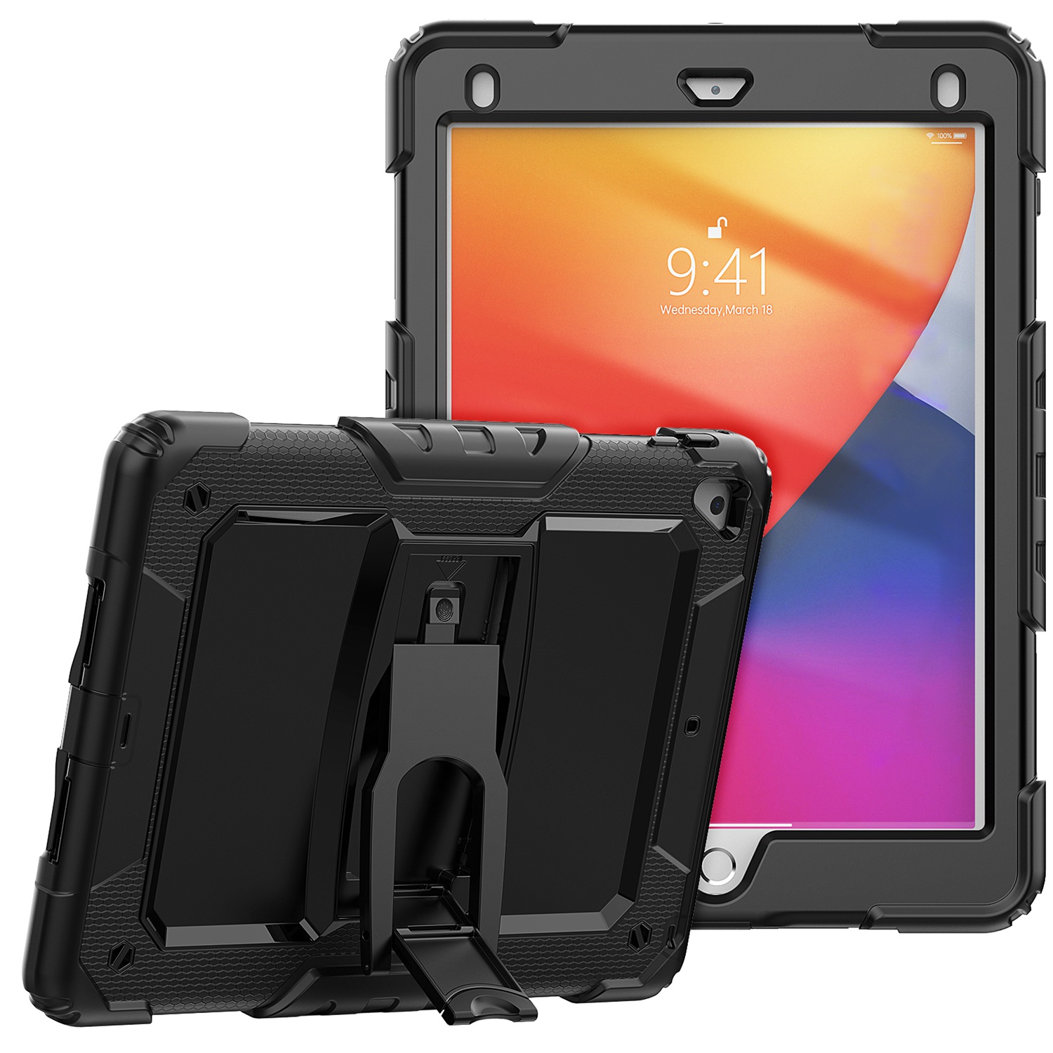 For Apple iPad Pro 11inch 2024 Heavy Duty Full Body Rugged Tablet Kickstand Case Cover - Black/Black