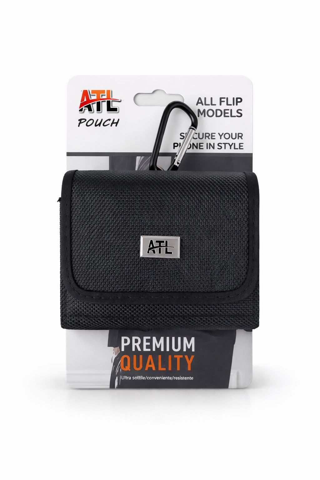 ATL CANVAS POUCH WITH CARD HOLDER (MAGNETIC CLOSURE) WITH METAL HOOK FOR ALL FLIP PHONES | BLACK