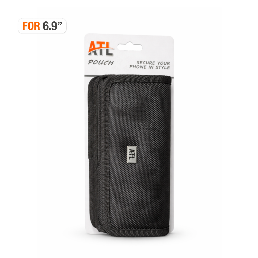 ATL HORIZONTAL CANVAS POUCH (VELCRO CLOSURE) WITH METAL CLIP FOR 6.9" | BLACK
