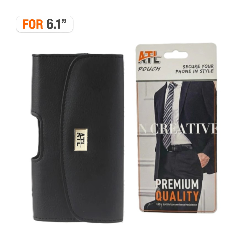 ATL HORIZONTAL LEATHER POUCH WITH CARD HOLDER (MAGNETIC CLOSURE) WITH METAL CLIP FOR 6.1" | BLACK