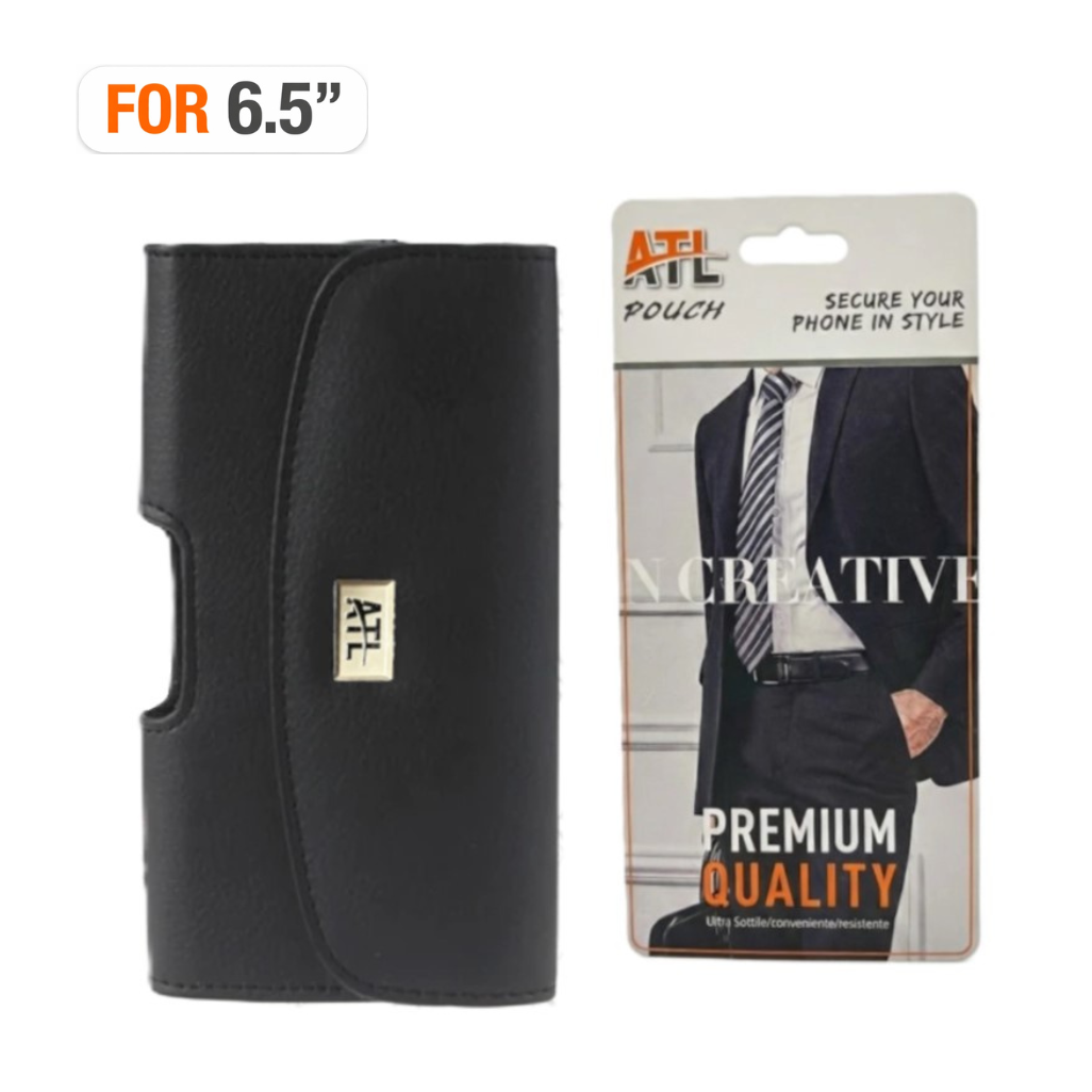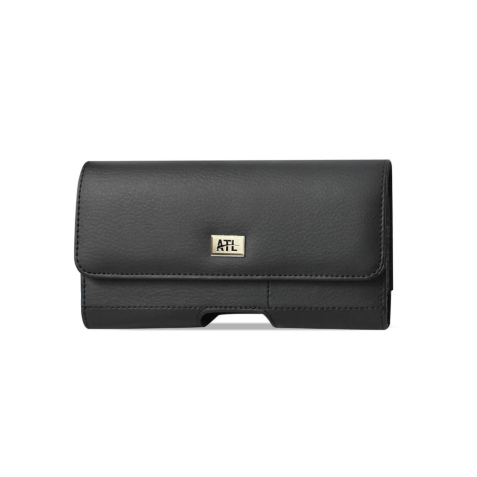 ATL HORIZONTAL LEATHER POUCH WITH CARD HOLDER (MAGNETIC CLOSURE) WITH METAL CLIP FOR 6.5" | BLACK