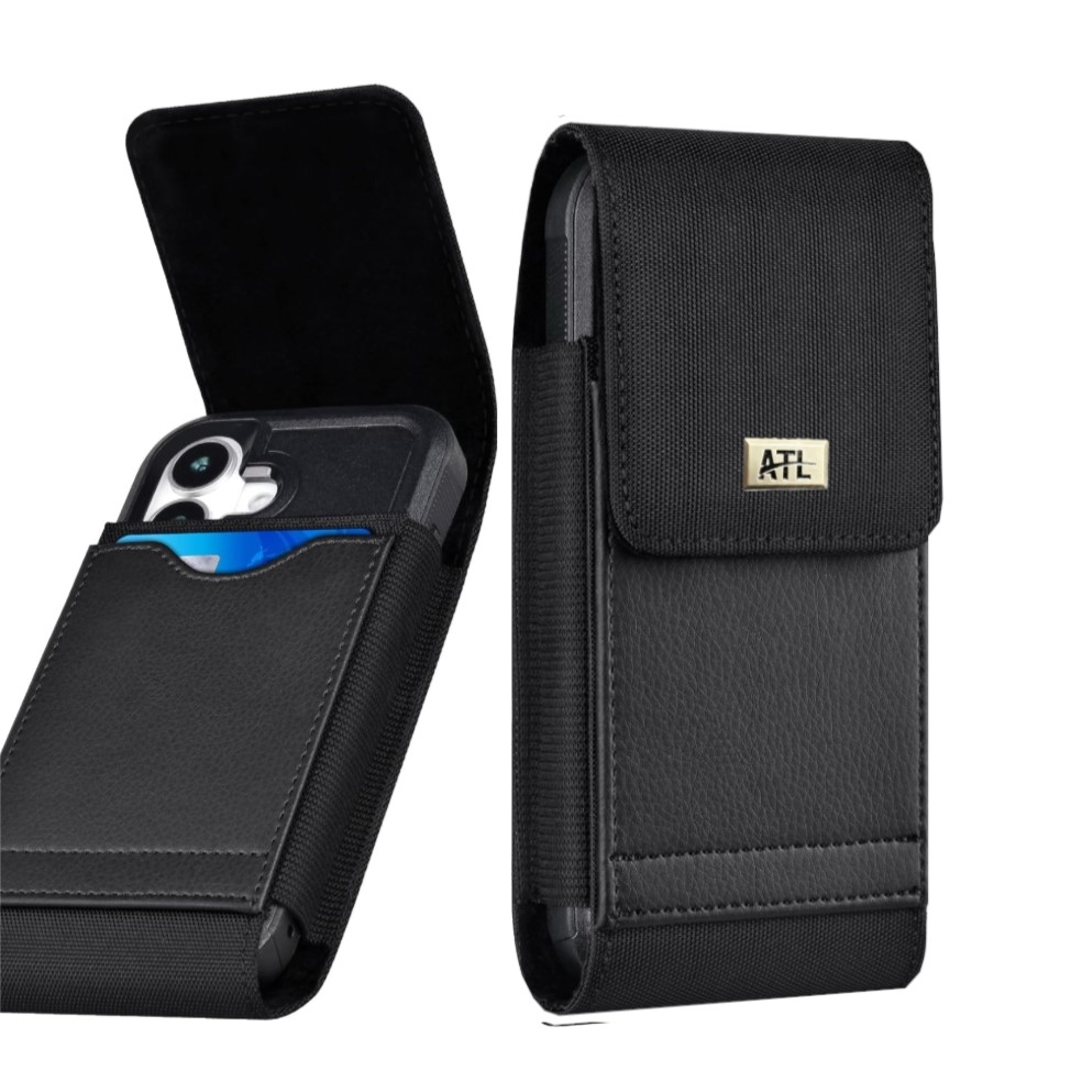 ATL VERTICAL CANVAS WITH LEATHER POUCH WITH CARD HOLDER (VELCRO CLOSURE) WITH METAL CLIP FOR 6.1" | BLACK