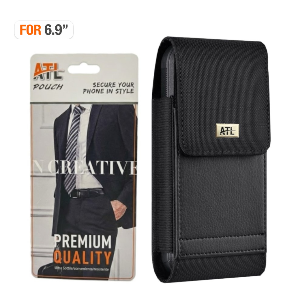 ATL VERTICAL CANVAS WITH LEATHER POUCH WITH CARD HOLDER (VELCRO CLOSURE) WITH METAL CLIP FOR 6.9" | BLACK