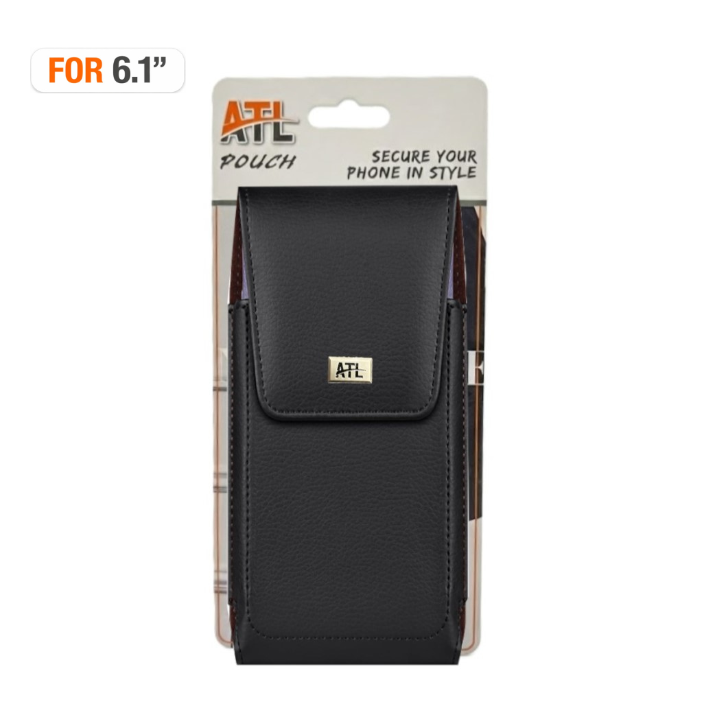 ATL VERTICAL LEATHER POUCH (MAGNETIC CLOSURE) WITH METAL CLIP FOR 6.1" | BLACK
