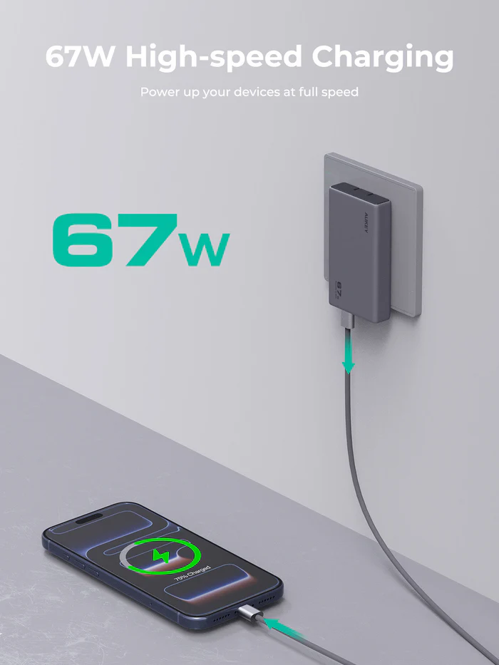 AUKEY Comet Slim 67W PD Wall Charger with GaN Technology