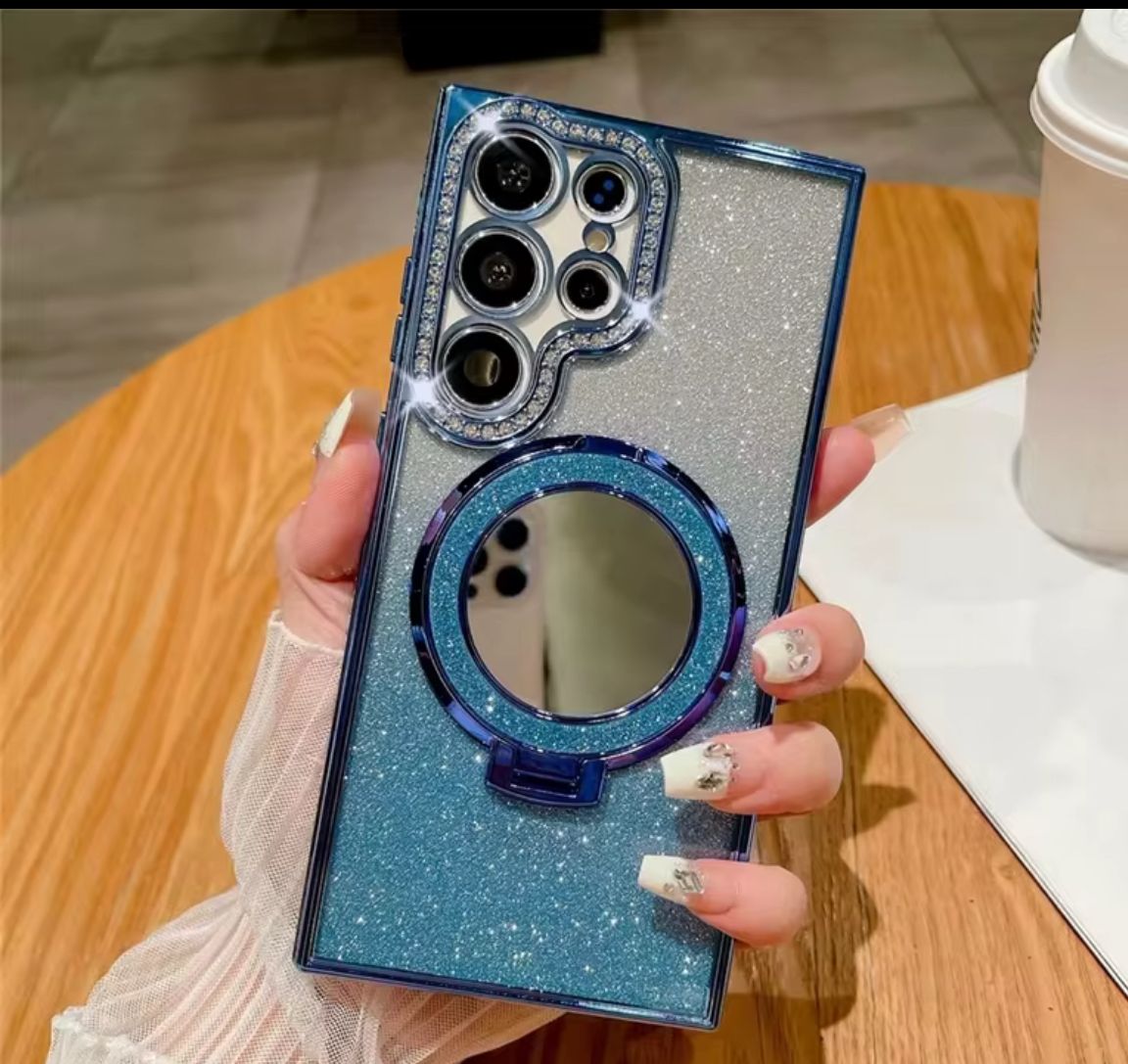 BIANZUAN SHINY MIRROR CASE WITH KICKSTAND FOR IPHONE 14 PRO MAX BLUE