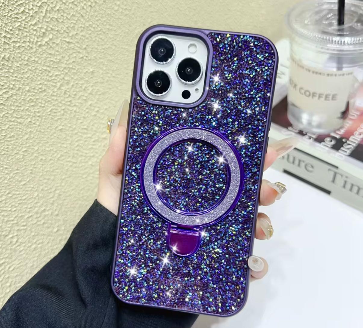 BOLI DIAMOND CASE WITH MAGNETIC STAND FOR IPHONE 14 PRO MAX PURPLE