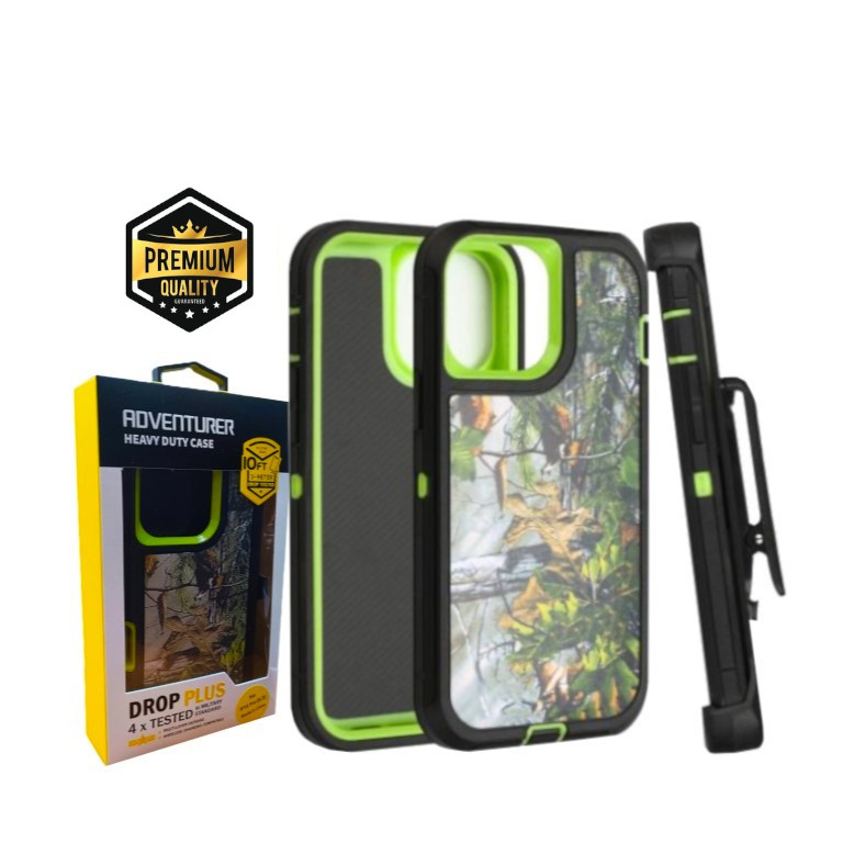 CAMO ADVENTURER HEAVY DUTY CASE WITH CLIP WITH RETAIL BOX PACK FOR IPHONE 12 PRO MAX/13 PRO MAX GREEN BRANCH