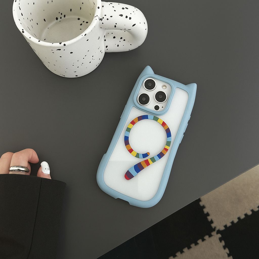 CAT'S EAR AND TAIL MAGSAFE CASE FOR IPHONE 14 PRO MAX | BLUE-RAINBOW