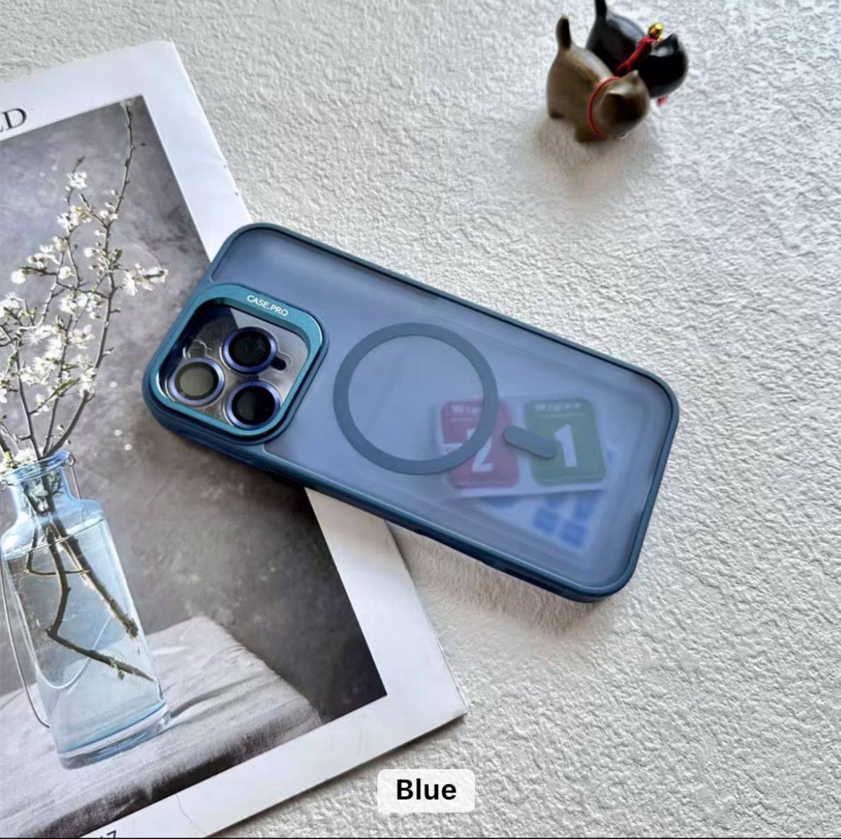 iPhone 12/12 Pro Cd Lens Pro Magnetic Case With Stand And Camera Lens Blue