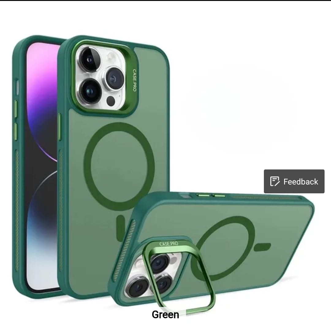 CD LENS PRO MAGNETIC CASE WITH STAND AND CAMERA LENS FOR IPHONE 13/14/15 GREEN