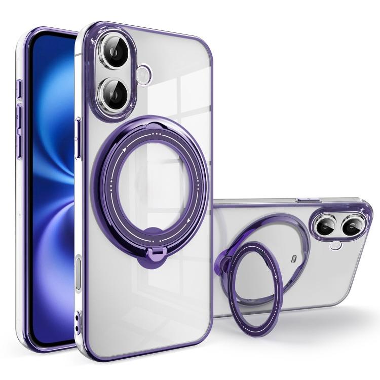 CLEAR MAGNETIC KICKSTAND CASE (WITH RETAIL BOX) FOR IPHONE 15 PLUS | PURPLE