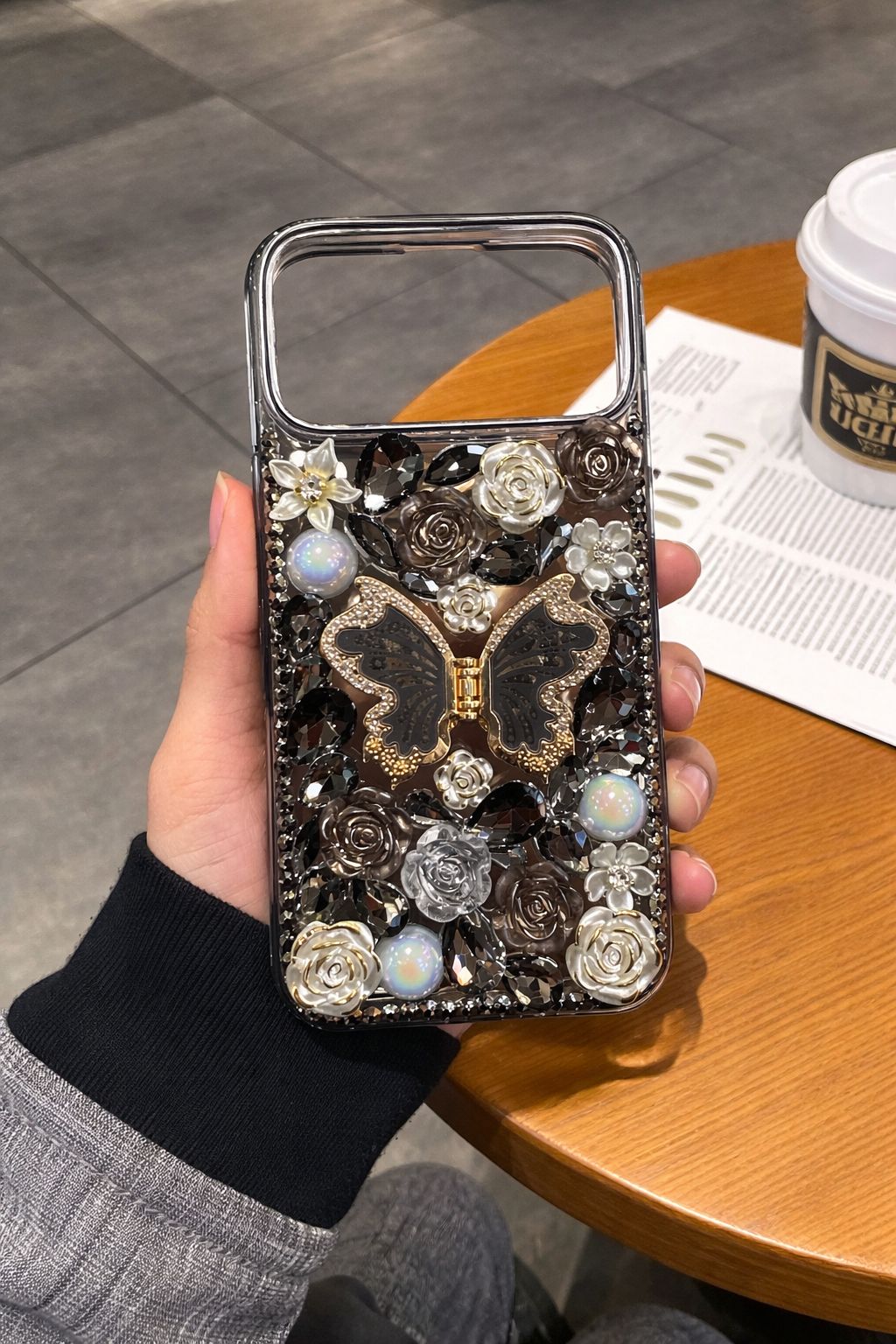 iPhone 17 Pro Max Colorful Diamond Butterfly Case Black