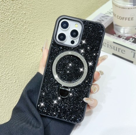 Crushed Diamond Case with Kickstand For iPhone 17 Black