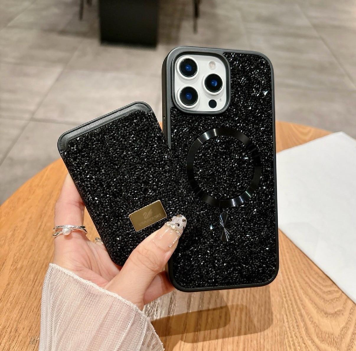 DIAMOND CASE WITH MAGSAFE CARD HOLDER (WITH RETAIL BOX) FOR IPHONE 16 | BLACK