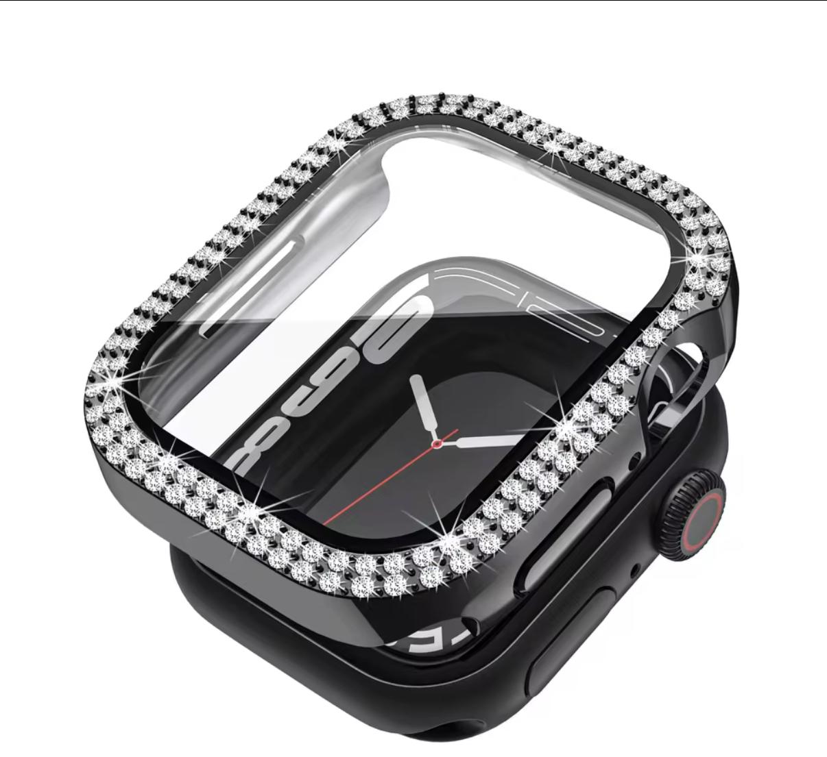DOUBLE ROW DIAMOND CASE WITH TEMPERED GLASS FOR IWATCH 42MM SIZE | BLACK
