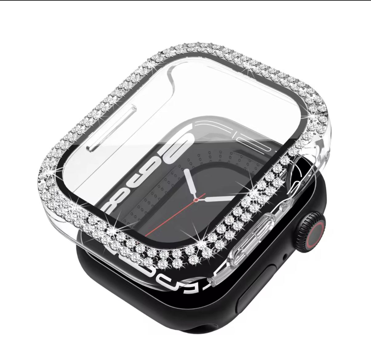 DOUBLE ROW DIAMOND CASE WITH TEMPERED GLASS FOR IWATCH 45MM SIZE | CLEAR