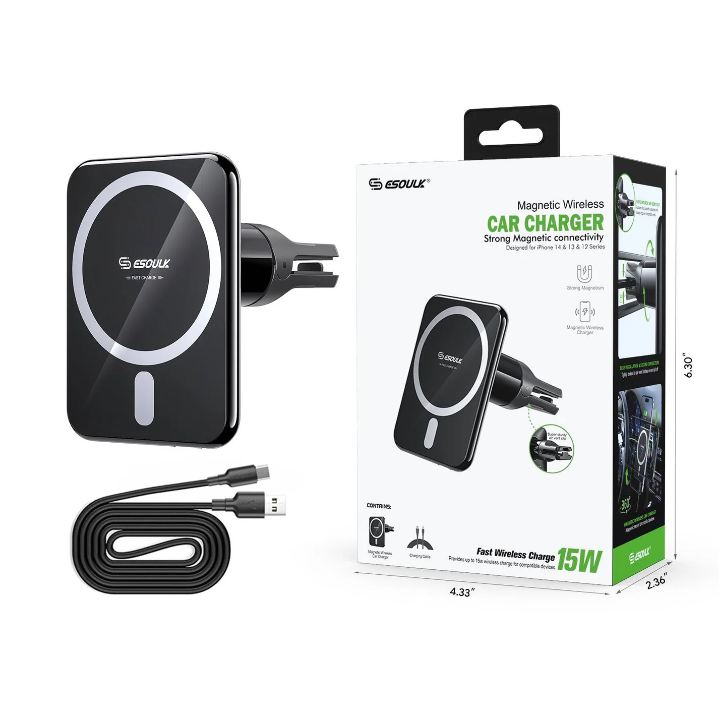 (EK-6001BK) 15W Magnetic Wireless Charger Air Vent Car Mount