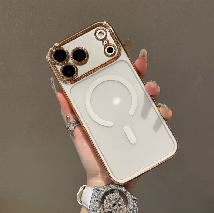 Electroplated Double Colors Magnetic Case For iPhone 14 White