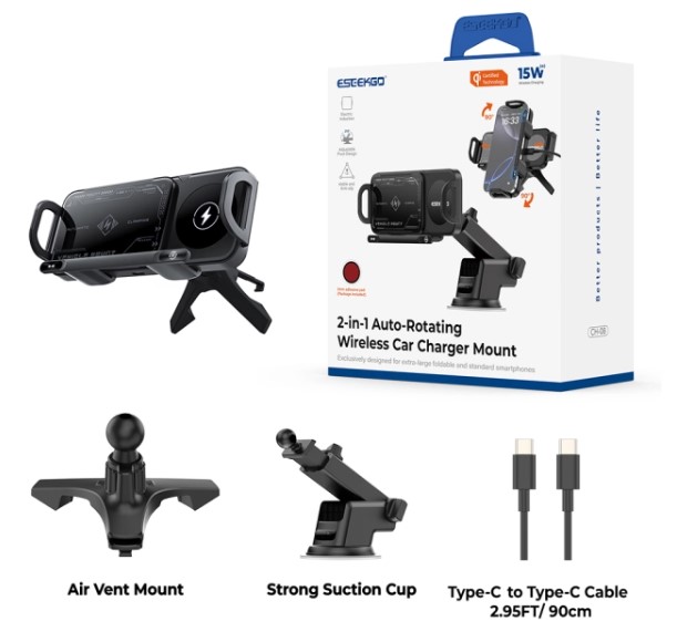 ESEEKGO CH-08 Folding Screen Wireless Charging Rotating Car Stand
