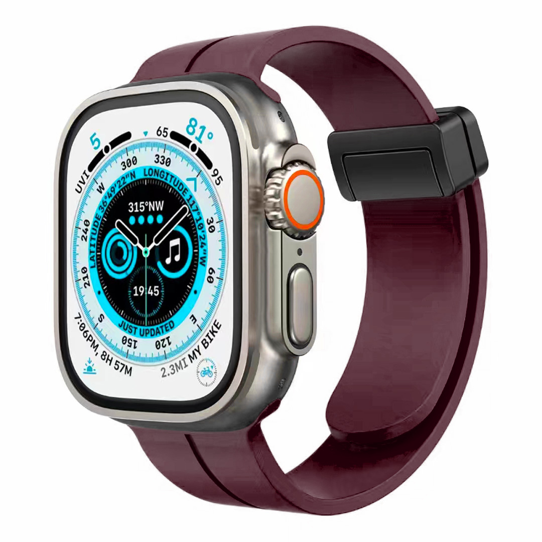 Apple Watch Size 42/44/45mm Magnetic Buckle Premium Silicone Watch Band - Burgundy