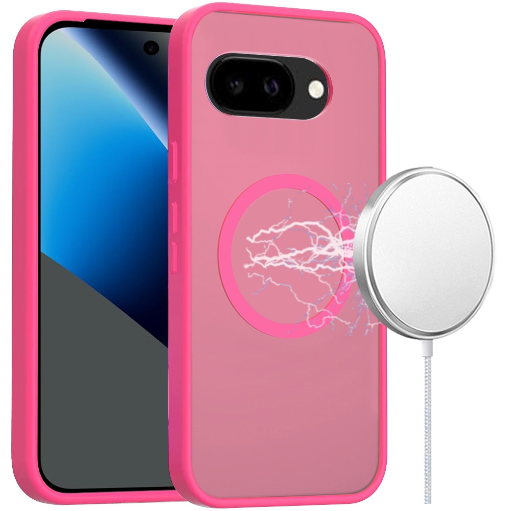 Google Pixel 10A [Magnetic Circle] Smooth Safe Matte Feel Hybrid Case - Hot Pink