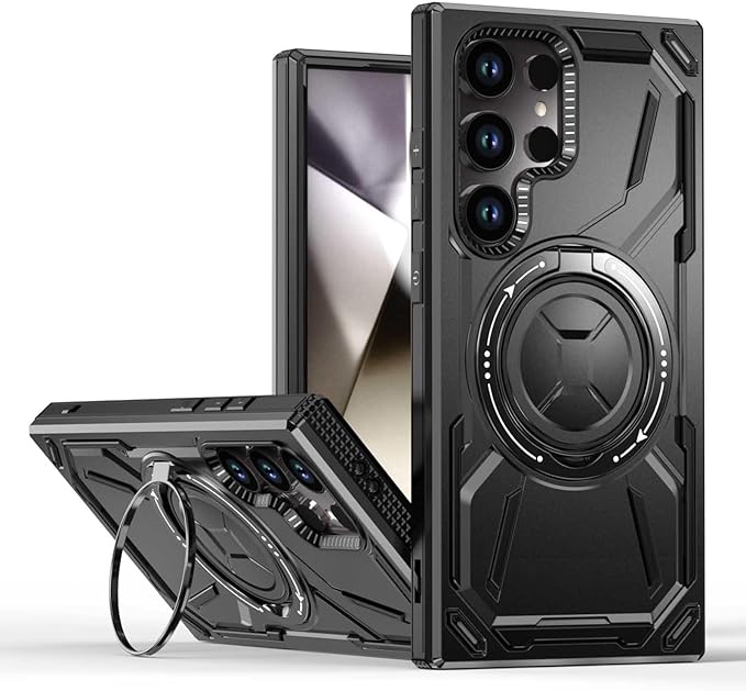 For Google Pixel 9 Pro XL Loop Hybrid wbith [Magnetic Ring Circle] 360 degrees Rotational Kickstand Case Cover - Black