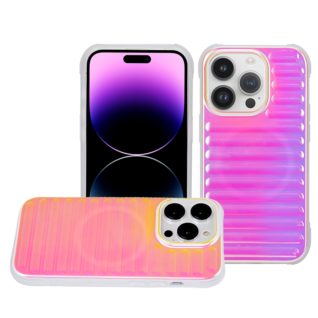 For iPhone 15 Pro METKASE Chrome Lined Pattern [Magnetic Circle] Premium Case - Light Pink