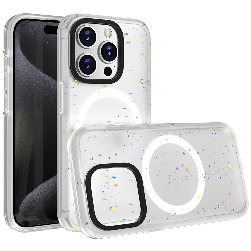 For iPhone 15 Pro METKASE Iridescent Spots [Magnetic Circle] Hybrid - White+iridescent Spots