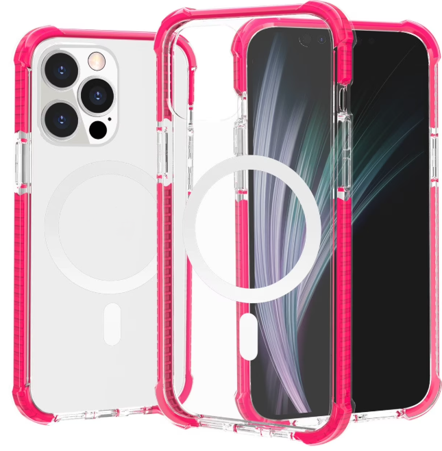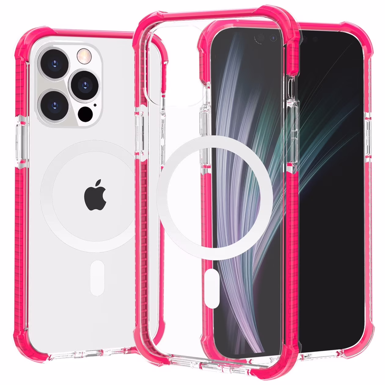 For iPhone 17 Acrylic [Magnetic Circle] Tough 2.5mm Transparent ShockProof Hybrid - Hot Pink