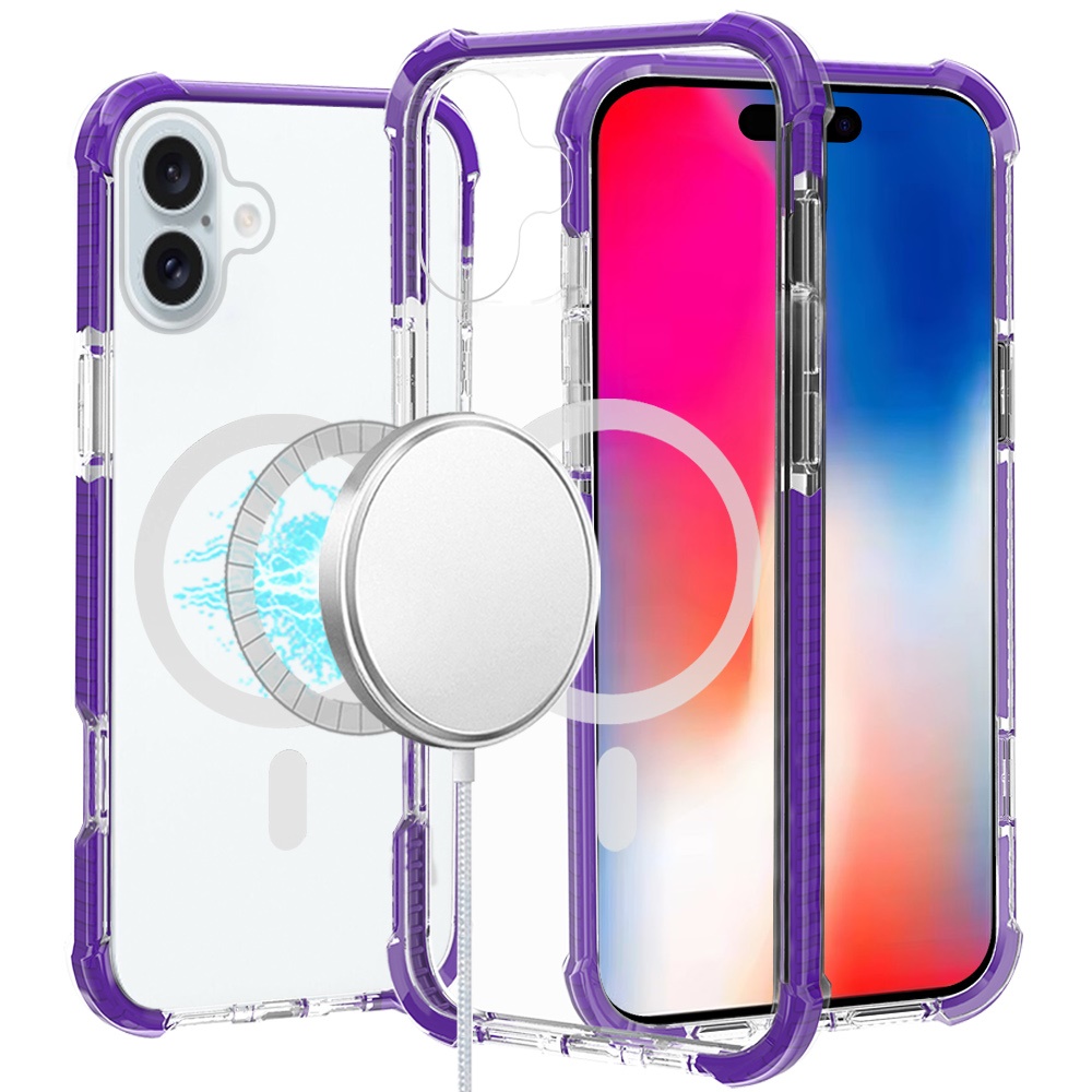 For iPhone 17 Acrylic [Magnetic Circle] Tough 2.5mm Transparent ShockProof Hybrid - Purple