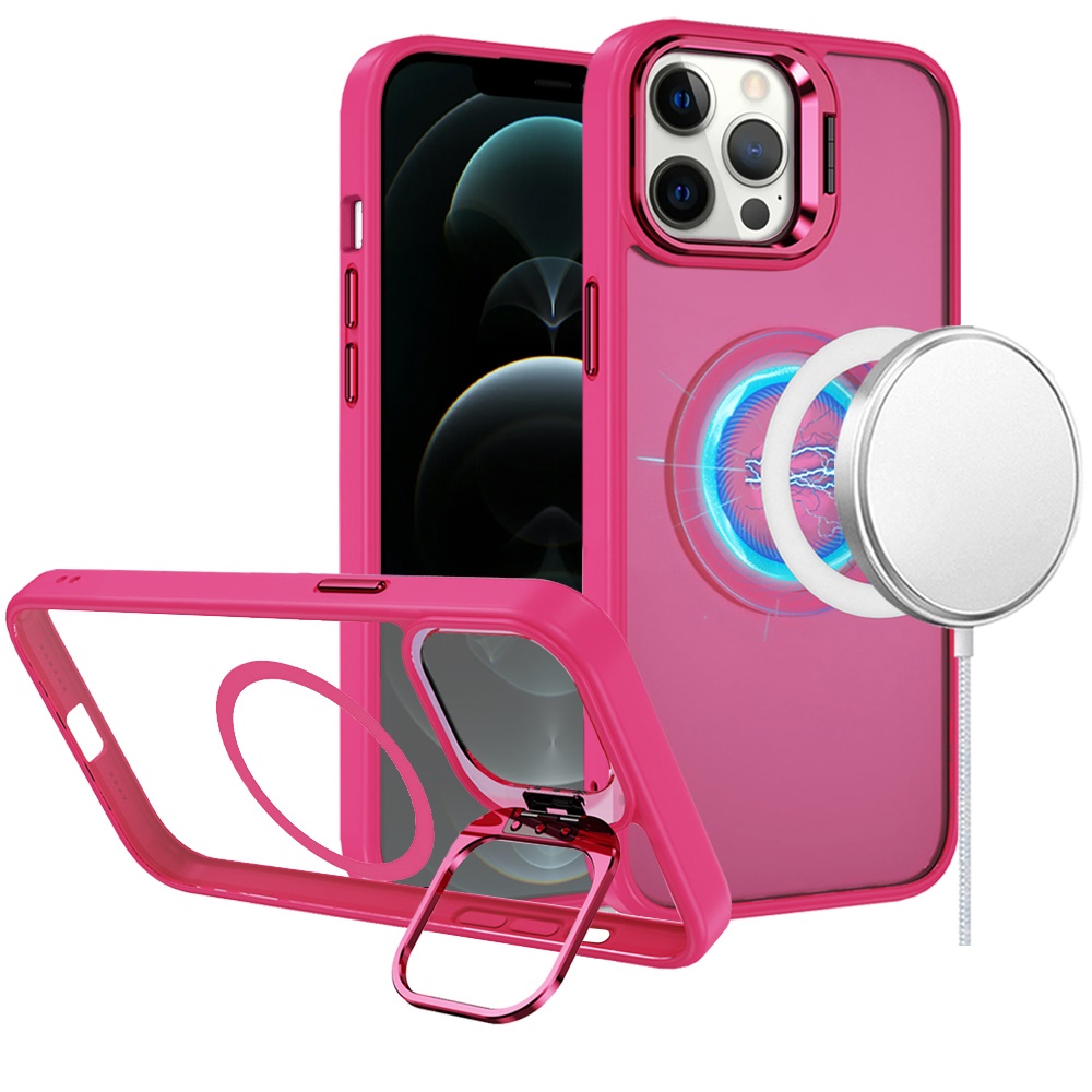 iPhone 17 Fearless Tough HQ Metallic Hybrid with Camera Ring Stand [Magnetic Circle] Case - Hot Pink