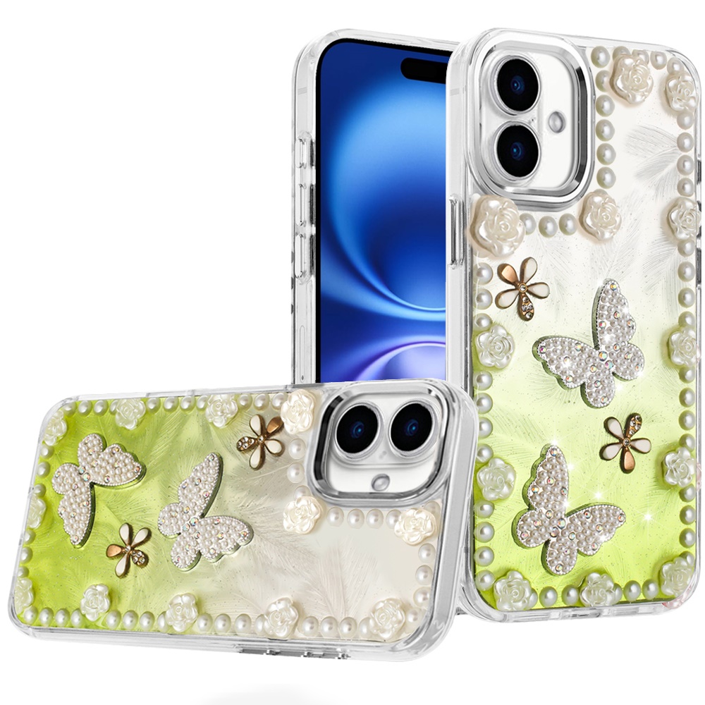 For iPhone 17 Pearls Epoxy Glitter Ornaments Design Chrome Edged Case - 1