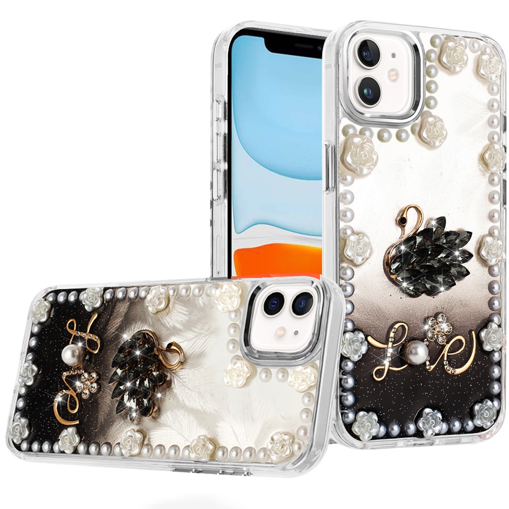 For iPhone 17 Pearls Epoxy Glitter Ornaments Design Chrome Edged Case - 2