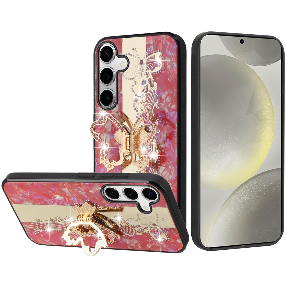 For Motorola Edge 2025 SPLENDID Diamond Glitter Ornaments Engraving Case Cover - Enchanted Butterfly Red