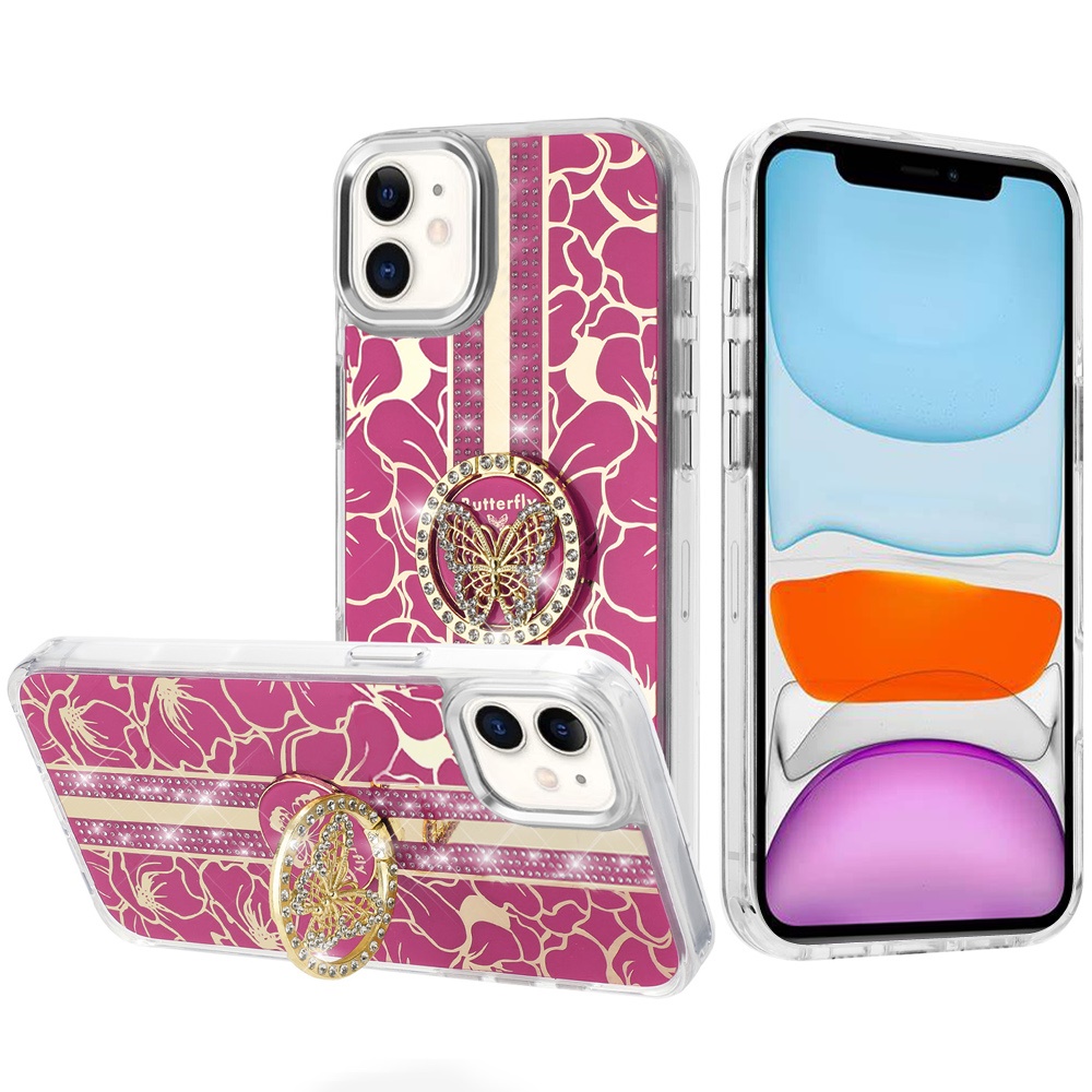 For Motorola Moto G 5G 2025 Splendid Floral Designs with Metal Camera and Buttons with Butterfly Ring Stand Hybrid Case - Hot Pink