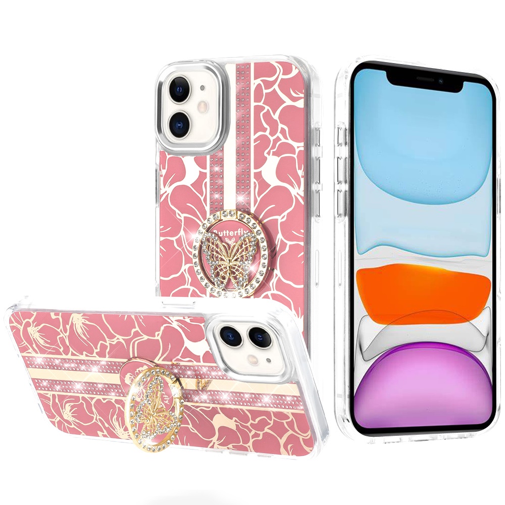 For Motorola Moto G 5G 2025 Splendid Floral Designs with Metal Camera and Buttons with Butterfly Ring Stand Hybrid Case - Light Pink