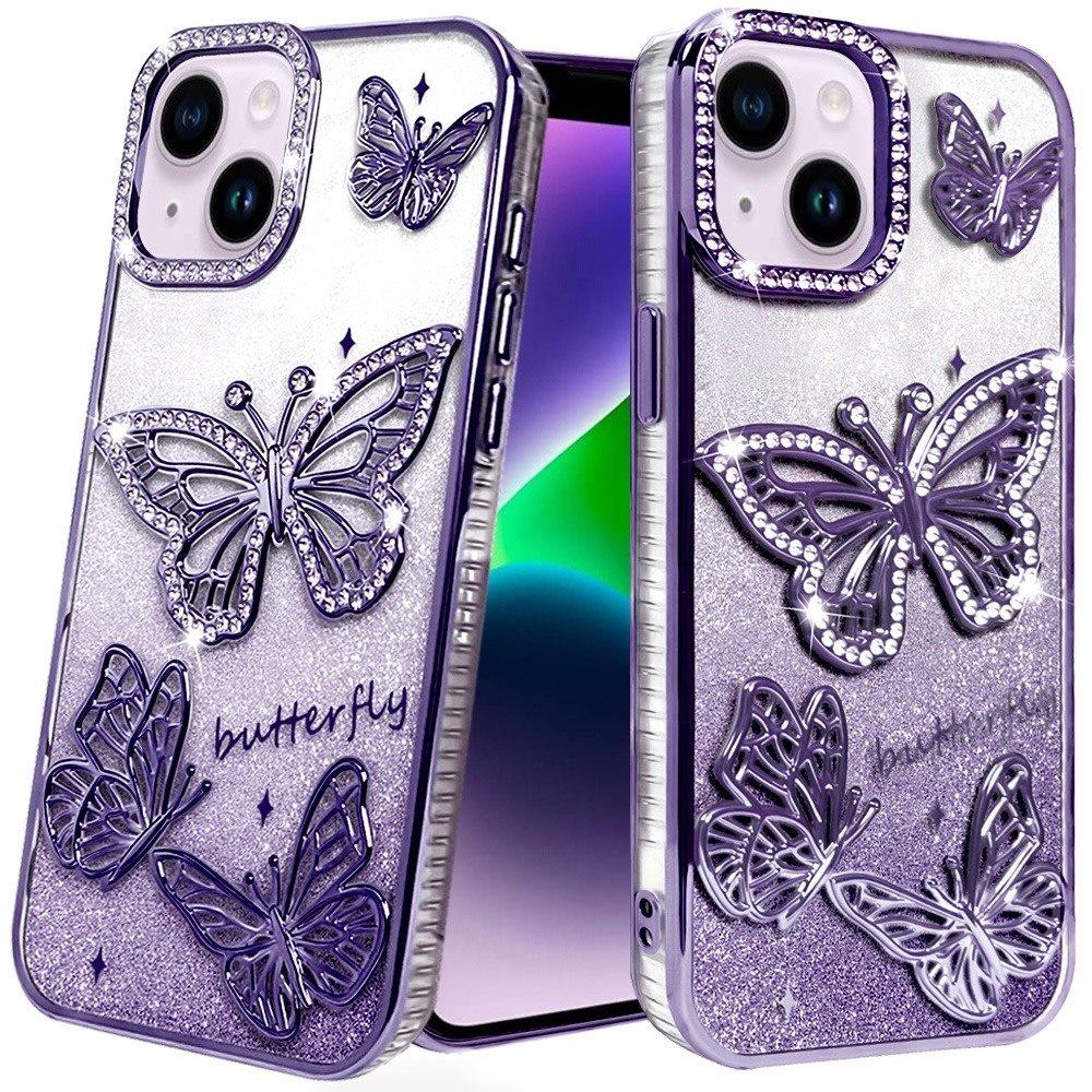 For Motorola Moto G Power 5G 2025 Butterfly Freedom Shimmer Glitter Thick TPU Case Cover - Purple