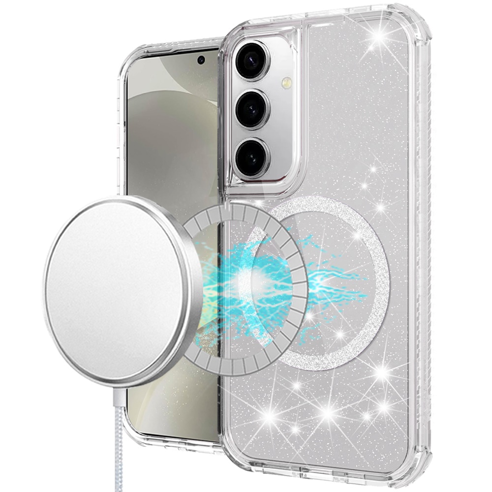 For Motorola Moto G Power 5G 2025 Magnetic Ring Glitter 3in1 Hybrid Case Cover - Clear
