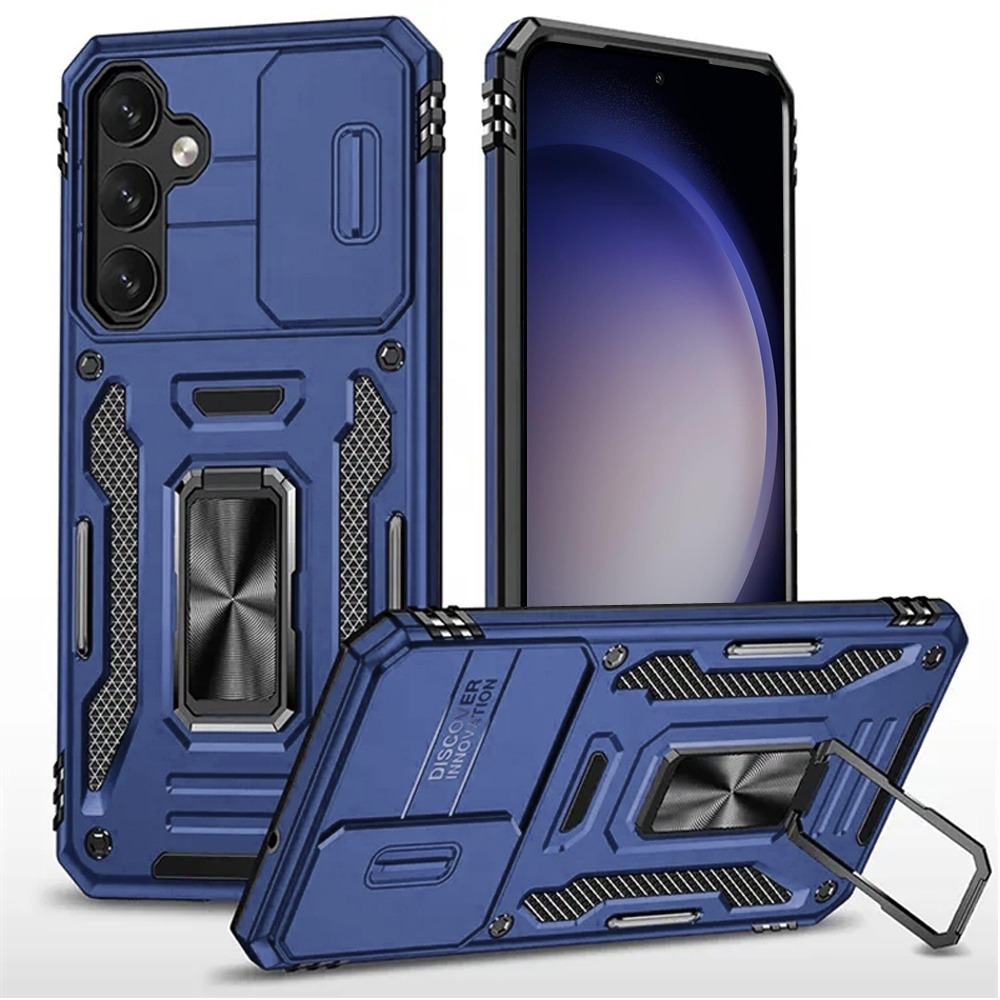 For Samsung A05 Utter Tough Metal Ring Movable Camera Window Hybrid Case Cover - Navy blue