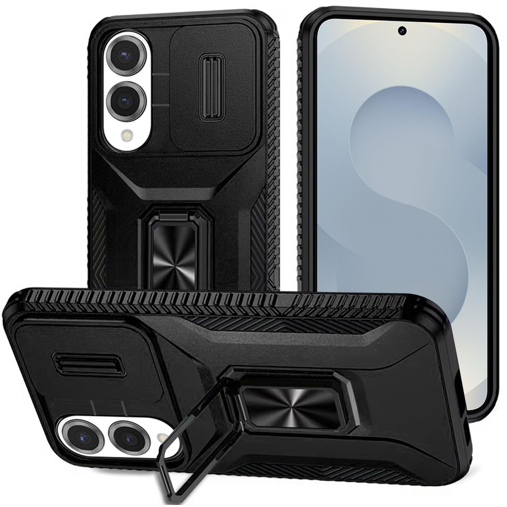 For Samsung A16 5G Complete Magnetic Metal Ring Stand Camera Protection Hybrid - Black