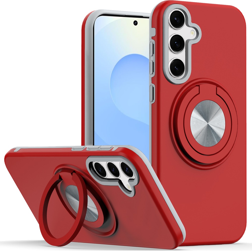 For Samsung Galaxy A36 Metal CD Pattern Matte Finished Hybrid with Rotational Ring [Car Mount Friendly] Case - Red
