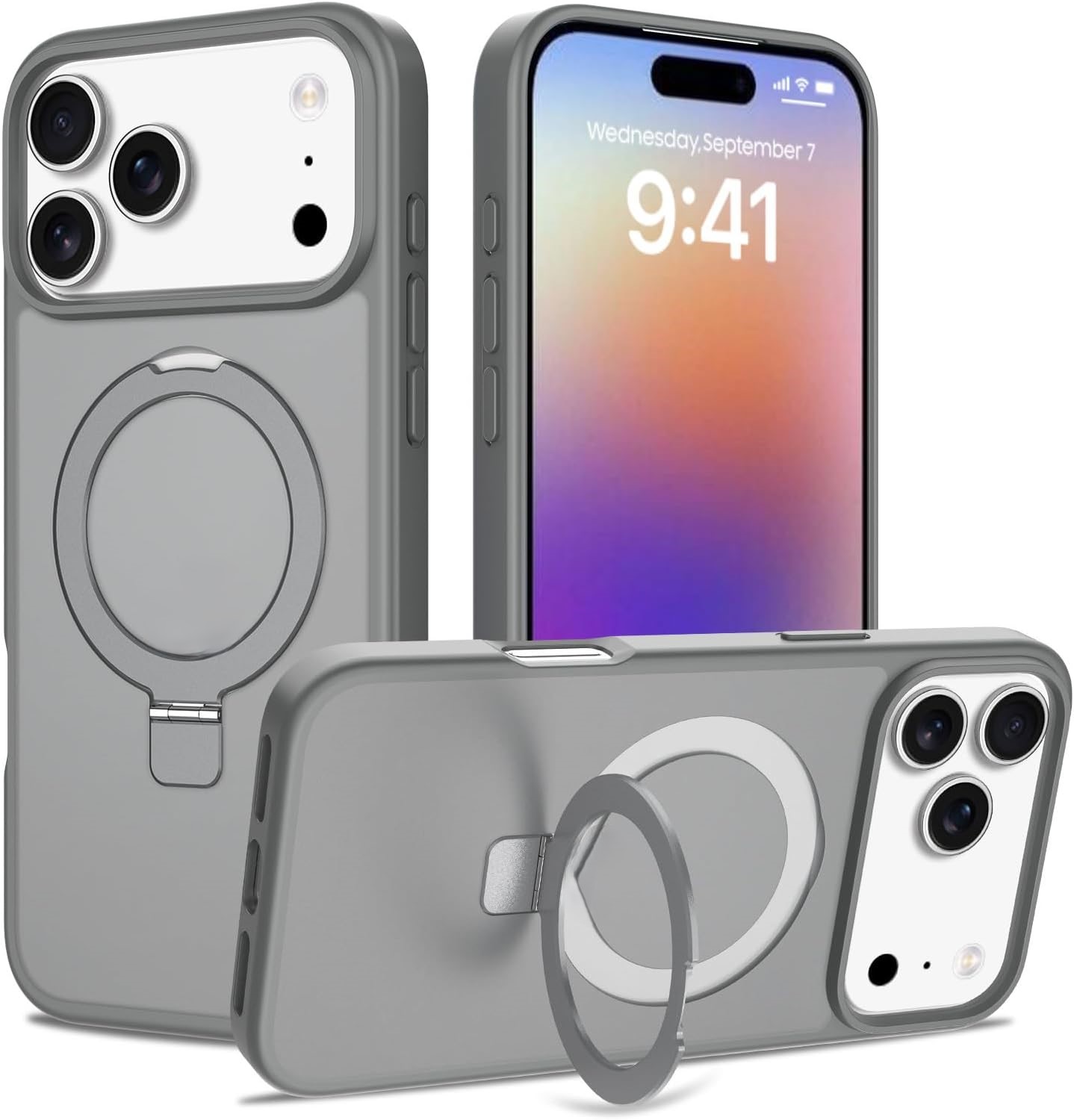 Samsung Galaxy A37 Magnetic Matching Ring Stand Full Rotation Matte Hybrid - Grey