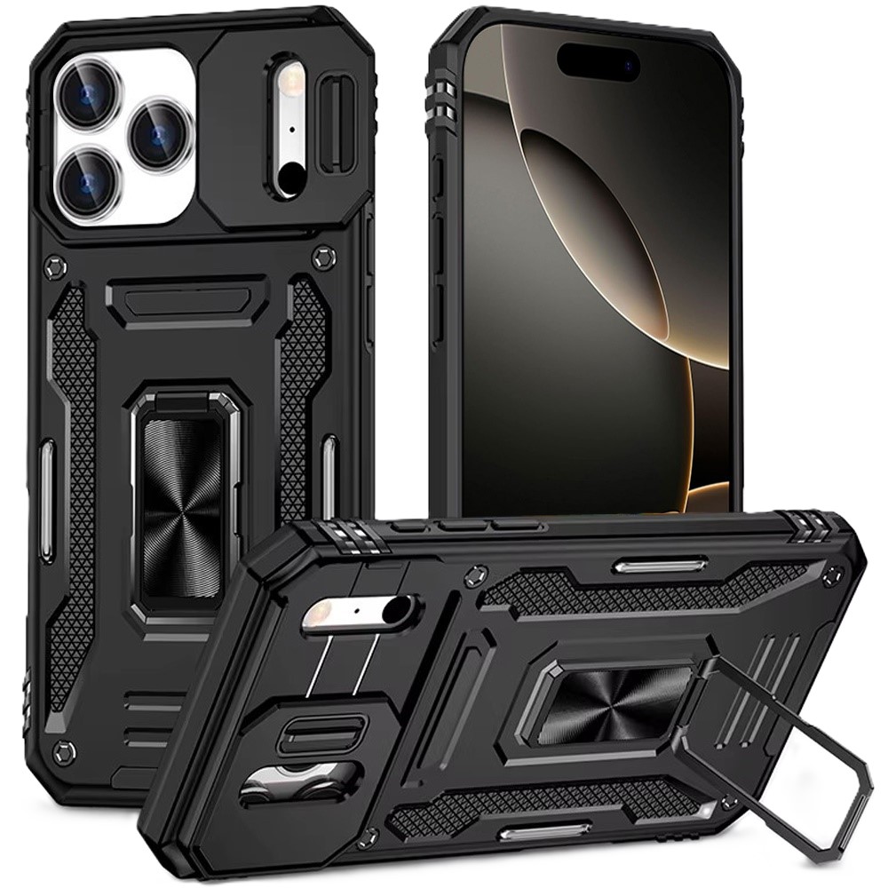 Samsung Galaxy A37 Utter Tough Metal Ring Movable Camera Window Hybrid Case Cover - Black