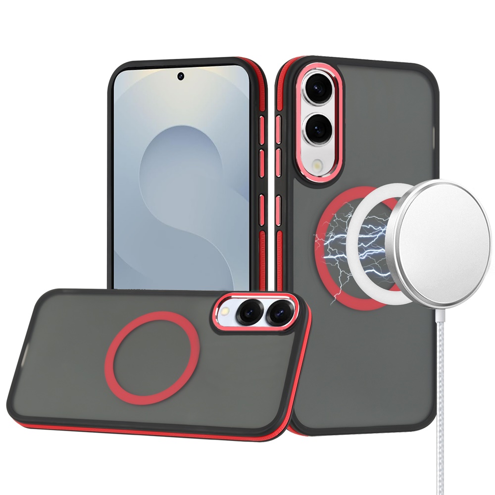 For Samsung Galaxy s25 Edge Royal Magnetic Ring Skin-Touch HQ Metal Buttons/Camera Lip Hybrid - Red