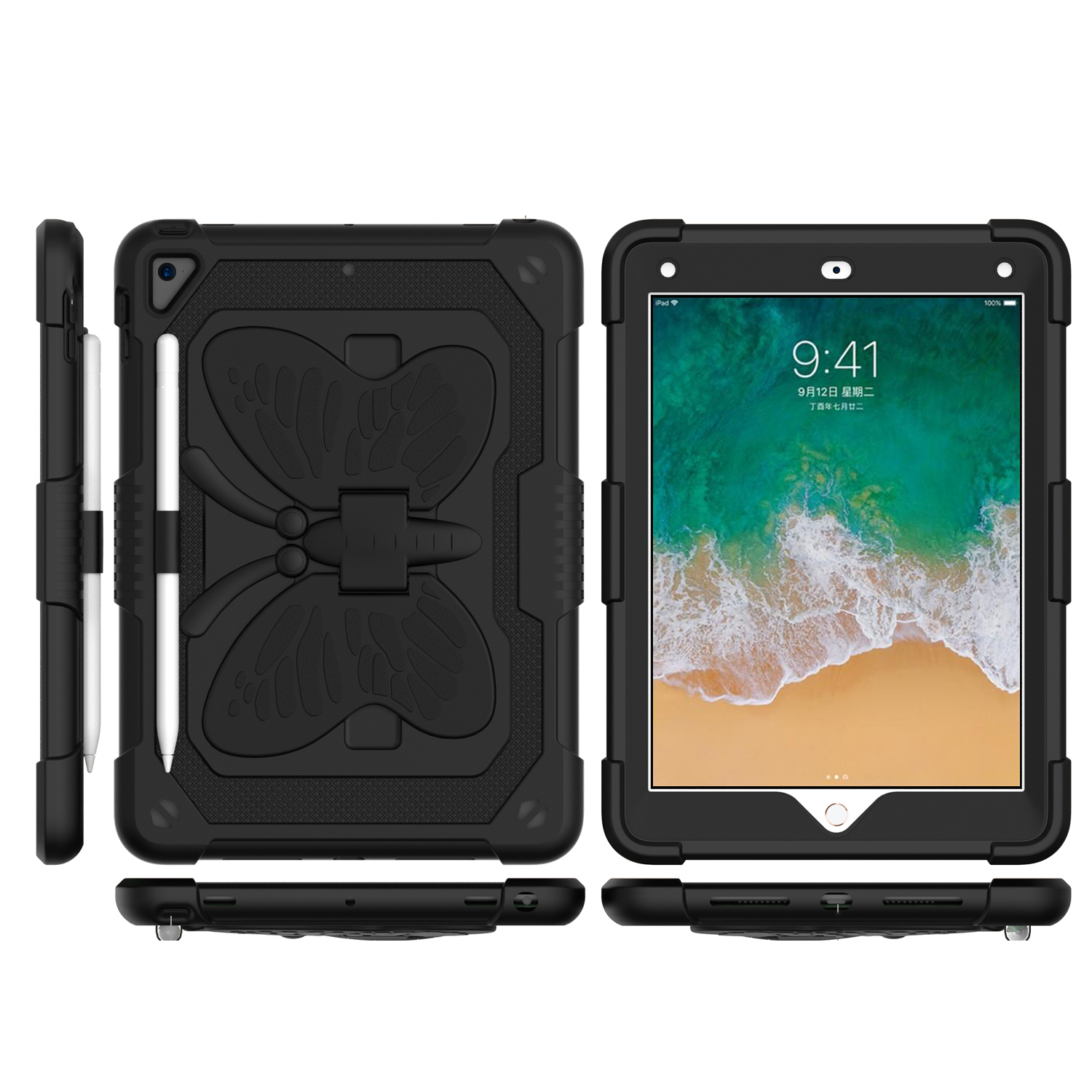 For Samsung Galaxy Tab A7 Lite 8.7 inch Butterfly Kickstand 3in1 Tough Hybrid Case Cover with Shoulder Strap - Black/Black