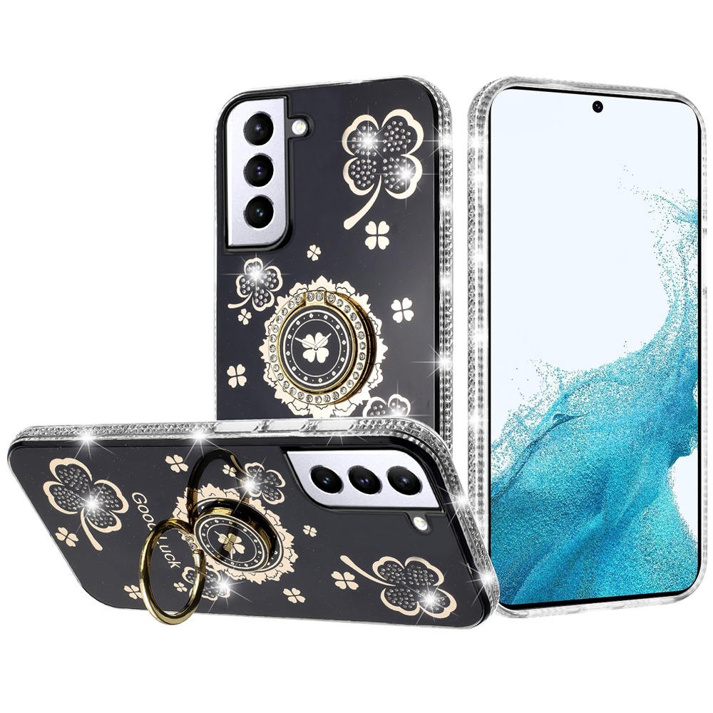 For Samsung S23 Ultra Splendid Glitter with Diamonds All Around Edges Ring Stand - Black